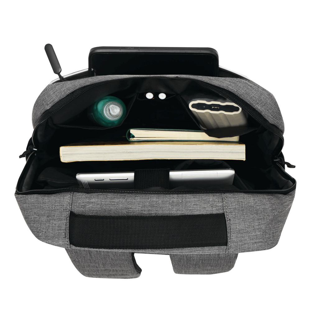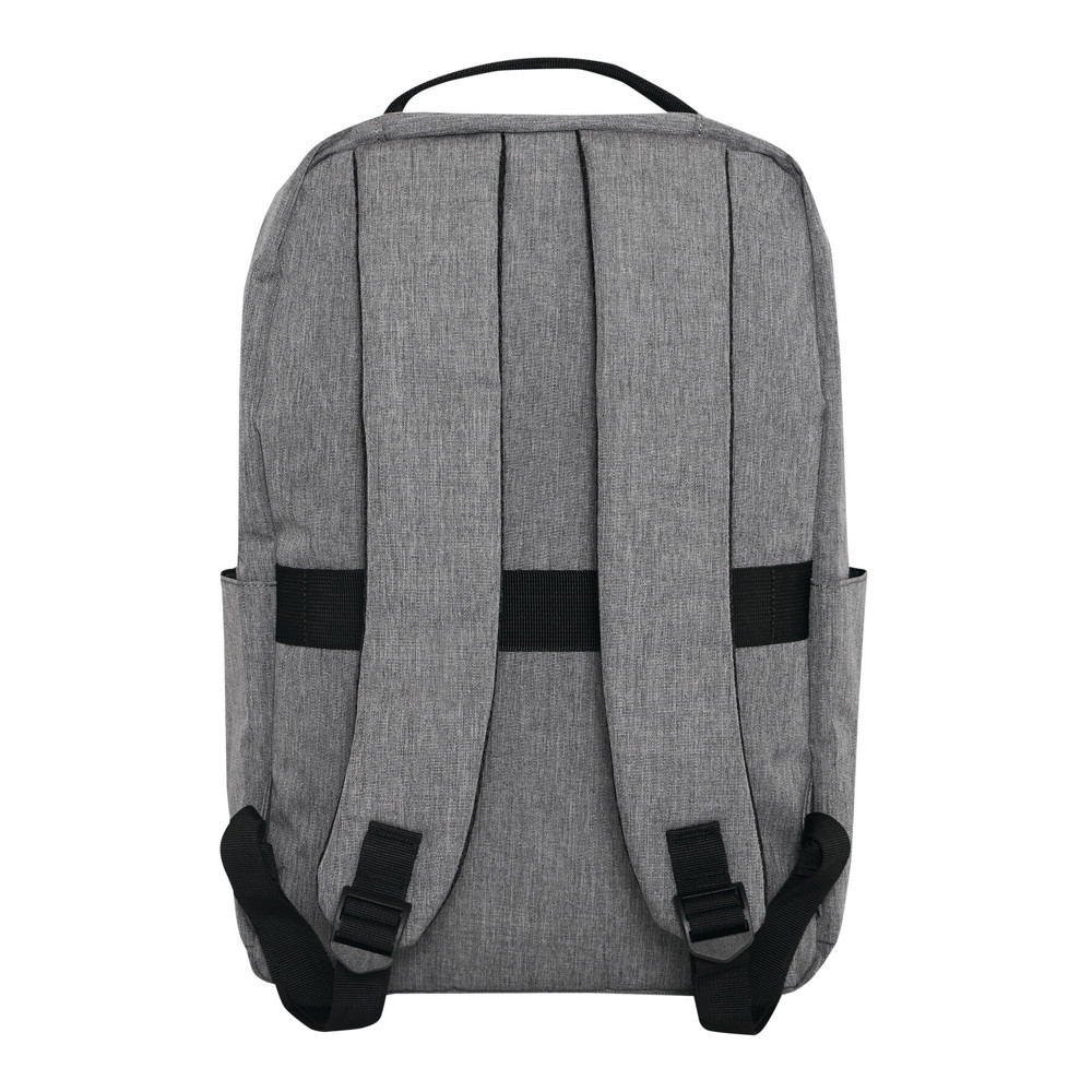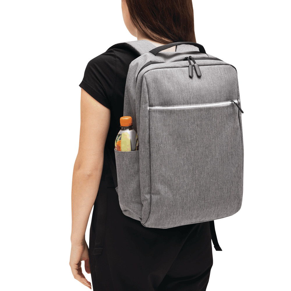Rucksack GHENT: aus recyceltem Polyester (RPET), 1 Reißverschluss-Vorfach mit Reflektorstreifen, Reißverschluss-Hauptfach mit gepolstertem Innenfach für Laptop oder Tablet, Organizer mit 4 Steckfächern, 2 seitliche Einsteckfächer, gepolsterter Tragegriff, gepolsterte und verstellbare Schultergurte, Gurt als Reporterfunktion auf der Rückseite