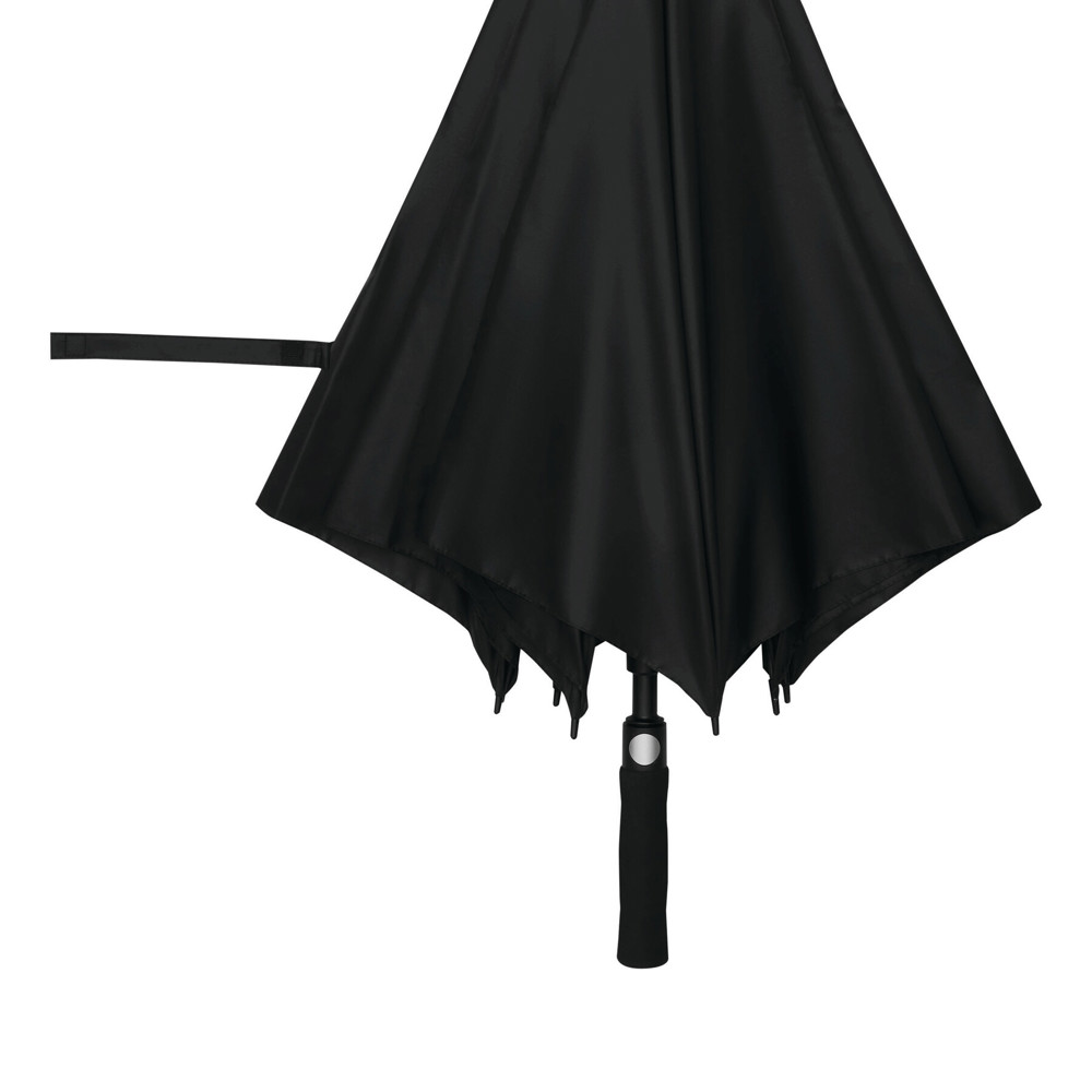 Automatik-Golfschirm ORA: Fiberglasstock, Fiberglasspeichen und Kunststofftips, EVA-Griff mit integrierter Automatik-Auslösetaste, Polyester-Pongee-Bespannung aus recycelten Kunststoffen / RPET, Schließband mit Klettverschluss