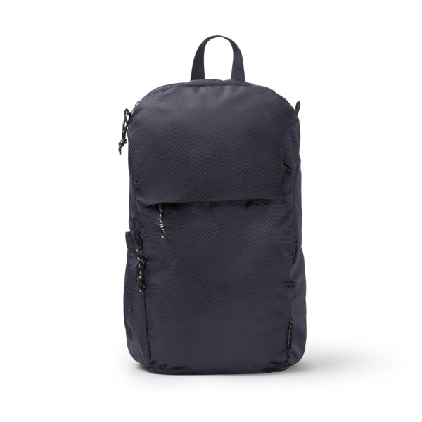 Rucksack aus wasserabweisendem Ripstop-RPET-Gewebe. Verfügt über ein Hauptfach mit Reißverschluss und eine Tasche im Innenraum mit elastischer Einstellung für die Beförderung elektronischer Geräte bis zu 9 Zoll sowie zwei äußere Vorderfächer mit Reißverschluss. Zusätzlich verfügt er über ein Seitenfach mit elastischer Einstellung für die Beförderung weiterer Gegenstände wie Flaschen oder Flakons. Dank seiner gepolsterten Schultergurte und Rückenseite ist er bequemer und leichter zu tragen.