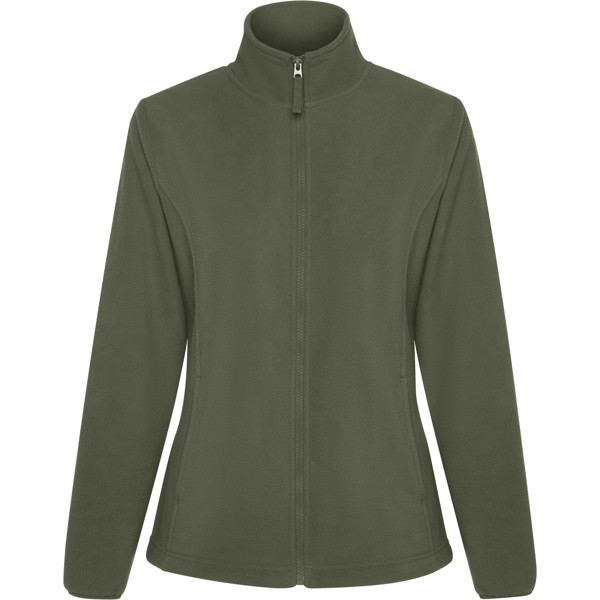 Damen-Fleecejacke mit Frontreißverschluss. Hoher Halsausschnitt. Bündchen mit elastischem Rand. In die Seitennähte integrierte Reißverschlusstaschen. Geklebte Hexenstiche. Alle Accessoires passen dazu. Interne Seitenversteller.