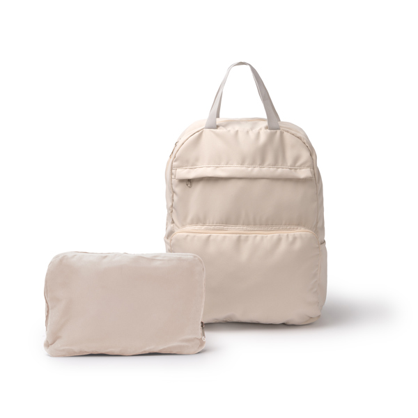 Rucksack aus Polyester und Baumwolle. Verfügt über eine formbare Struktur dank der Vordertasche mit doppeltem Reißverschluss, die das Falten ermöglicht, wodurch Platz gespart wird und sie leicht in jedem Raum verstaut werden kann. Inklusive Hauptfach und zwei Vorderfächer für kleinere Gegenstände, alle mit Reißverschluss. Mit doppelten Tragegriffen an der Oberseite und verstellbaren gepolsterten Schultergurten sowie zwei Seitenfächern zum Tragen von Flaschen.