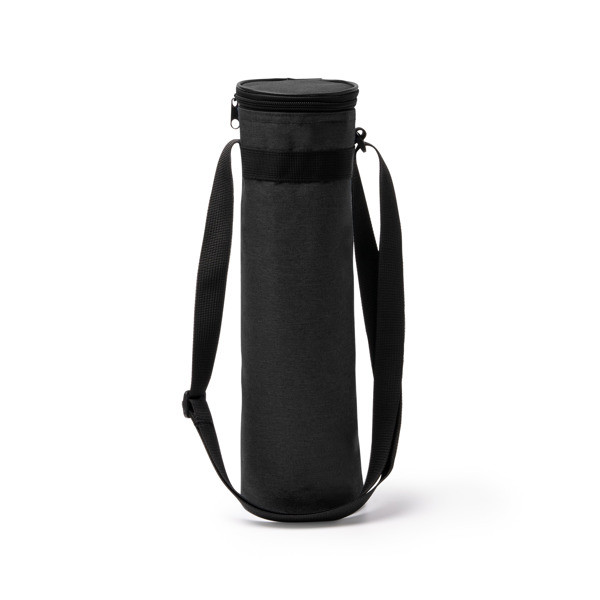 Kühler für Flaschen bis 1,5 l. Hergestellt aus RPET 600D auf der Außen- und Innenseite, mit Wärmedämmung, um Getränke auf der optimalen Temperatur zu halten. Mit Reißverschluss am oberen Rand und integriertem verstellbarem Riemen für einfaches Tragen.