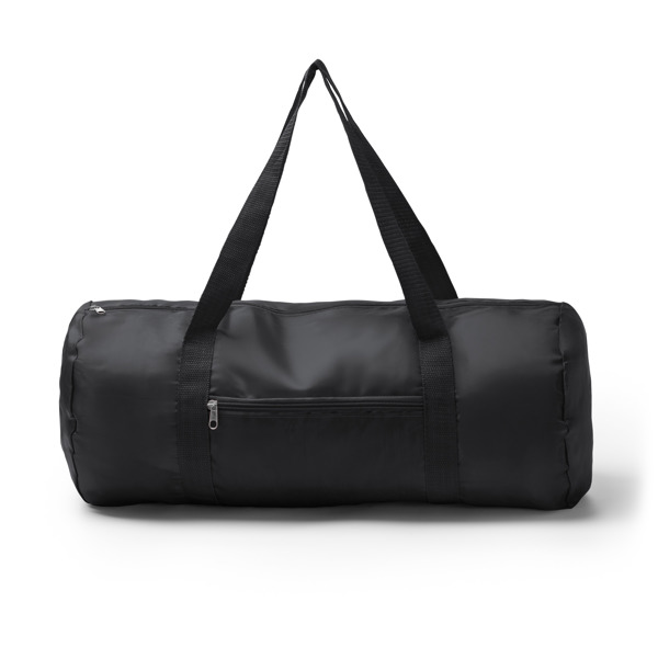 Faltbare Sporttasche aus 290T RPET. Verfügt über ein Hauptfach mit Reißverschluss. Inklusive einer Außentasche mit doppeltem Reißverschluss für kleine Gegenstände, die auch als Aufbewahrungsbeutel dient. Enthält auch zwei farblich passende Griffe zum einfachen Tragen.