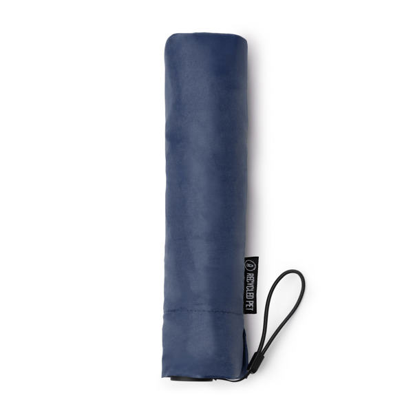 Leichter, mini-zusammenklappbarer Regenschirm aus RPET mit manueller Öffnung und 190T-Pongee-Gewebe. Mit Fiberglasrippen und einem zentralen Aluminiumschaft, die dem Rahmen Stabilität verleihen und sein windfestes System bilden. Inklusive UPF50-UV-Schutz mit einer transparenten Beschichtung. Dank seines zusammenklappbaren Systems ist dieser Regenschirm kompakt und lässt sich in jedem Raum verstauen. Verfügt über einen schwarzen Tragegriff und eine passende Regenschirmhülle.