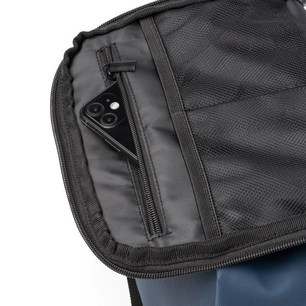Rucksack aus PU-Leder. Verfügt über ein Hauptfach auf der Oberseite mit doppeltem Reißverschluss, einschließlich innerer Netzfächer und einer Reißverschlusstasche sowie einer Tasche mit elastischer Einstellung für Geräte bis zu 10 Zoll. Inklusive eines weiteren Faches am Boden für die Beförderung weiterer Gegenstände, ebenfalls mit doppeltem Reißverschluss. Eine vertikale Diebstahlsicherungstasche befindet sich auf der Rückseite des Rucksacks. Gepolsterter Rücken und Griffe für mehr Komfort.
