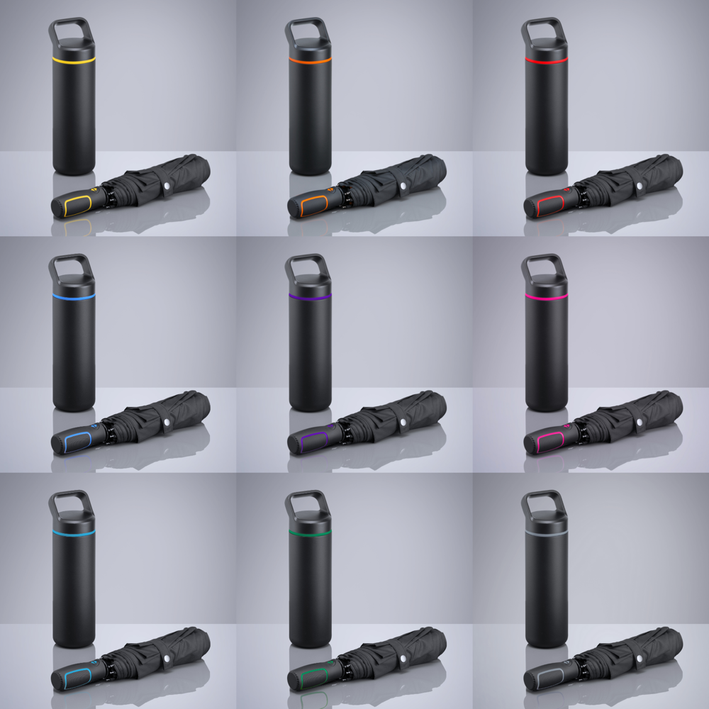 Outdoor Set: Edelstahl-Trinkflasche 650 ml und Automatikschirm