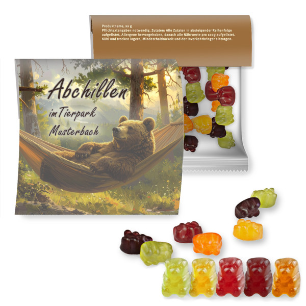 Gummibärchen ohne Gelatine, ca. 30g, Express Maxi-Tüte mit Werbereiter