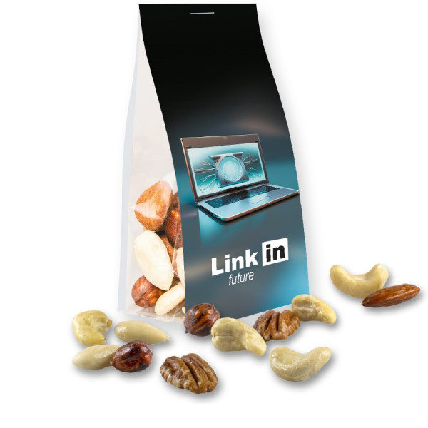 NusskernMix, ca. 40g, Express Blockbodenbeutel mit Werbereiter