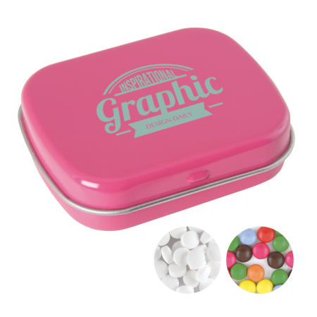 Scharnierdose, mit verschiedenen europäischen Süßigkeiten, standardmäßig gefüllt mit DutchDex Dextro
