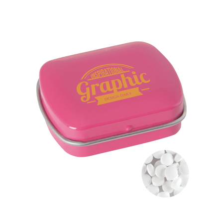 Kleine Scharnierblechdose mit ca. 10 g extra starken, zuckerfreien Dreiecks-Minzbonbons
