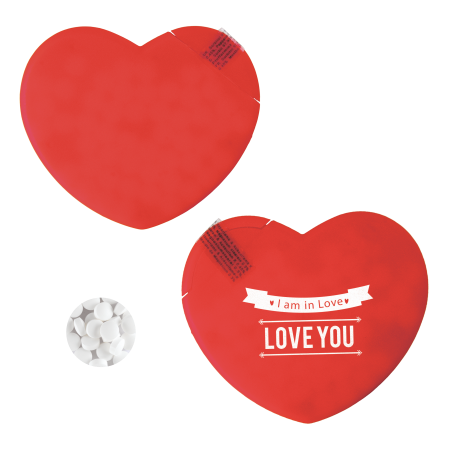 Mintdispenser Herz 72x60 mm mit ca. 8 gr. Minties zuckerfrei und Zutatenaufkleber. Verfügbar in rot. mehr