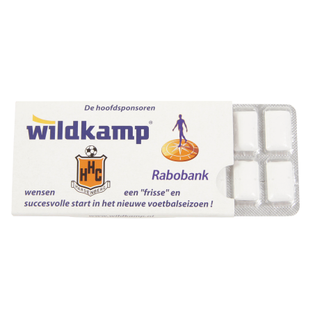 Kaugummi Xylitol im Blister 12 Stück, 105 x 55 x 8 mm, in einer bedruckten Kartonhülle bis Full Colour