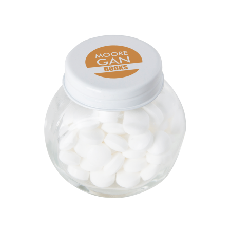 Bonbonglas mini mit ca. 40 g Pfefferminzbonbons, farbiger Deckel