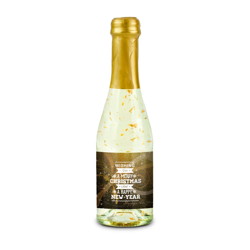0,2 l - Aromatisiertes, weinhaltiges Getränk mit 22-karätigem, lebensmittelechtem Blattgold und Kohlensäure in klarer 0,2 l Secco Flasche mit Schraubverschluss, Alkohol 10% Vol. - Kapselfarbe Gold - Sektsteuerfrei