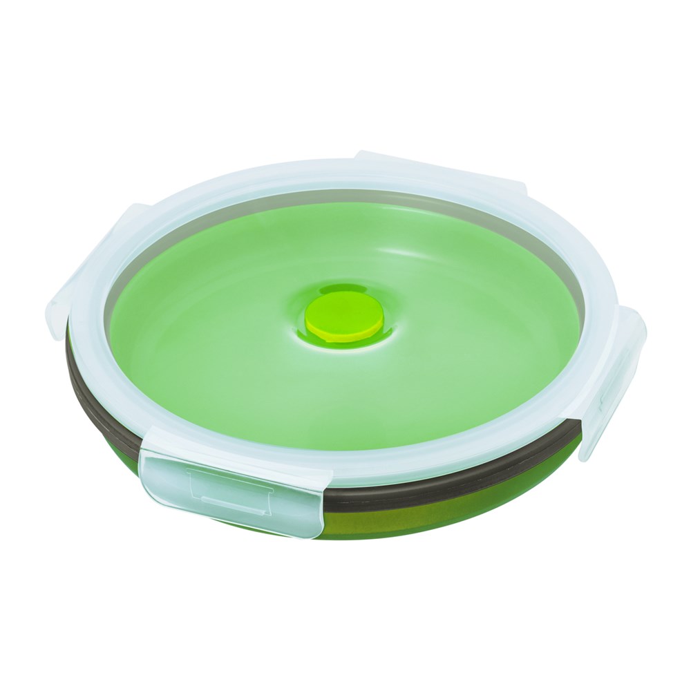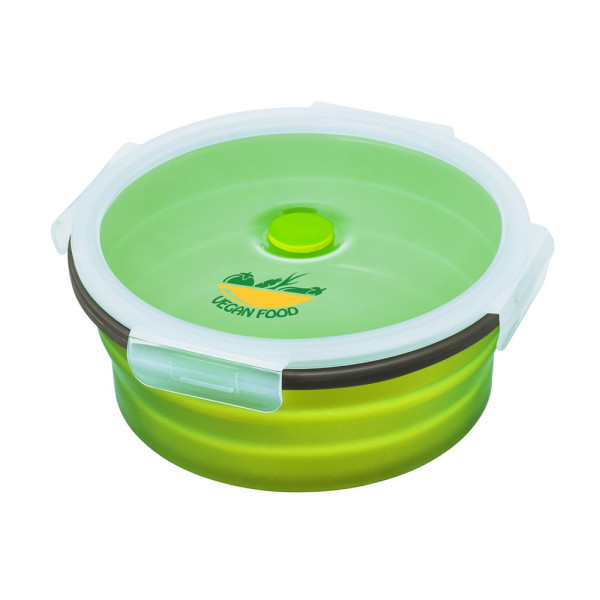 Mit unserer praktischen Lunchbox für unterwegs, ist der kleine Snack immer griffbereit. Ideal für das Büro, denn die runde Lunchbox ist sogar mikrowellengeeignet. Praktisch: Nach dem Gebrauch lässt sie sich platzsparend, flach zusammenfalten und somit prima auch in kleinen Taschen transportieren.
