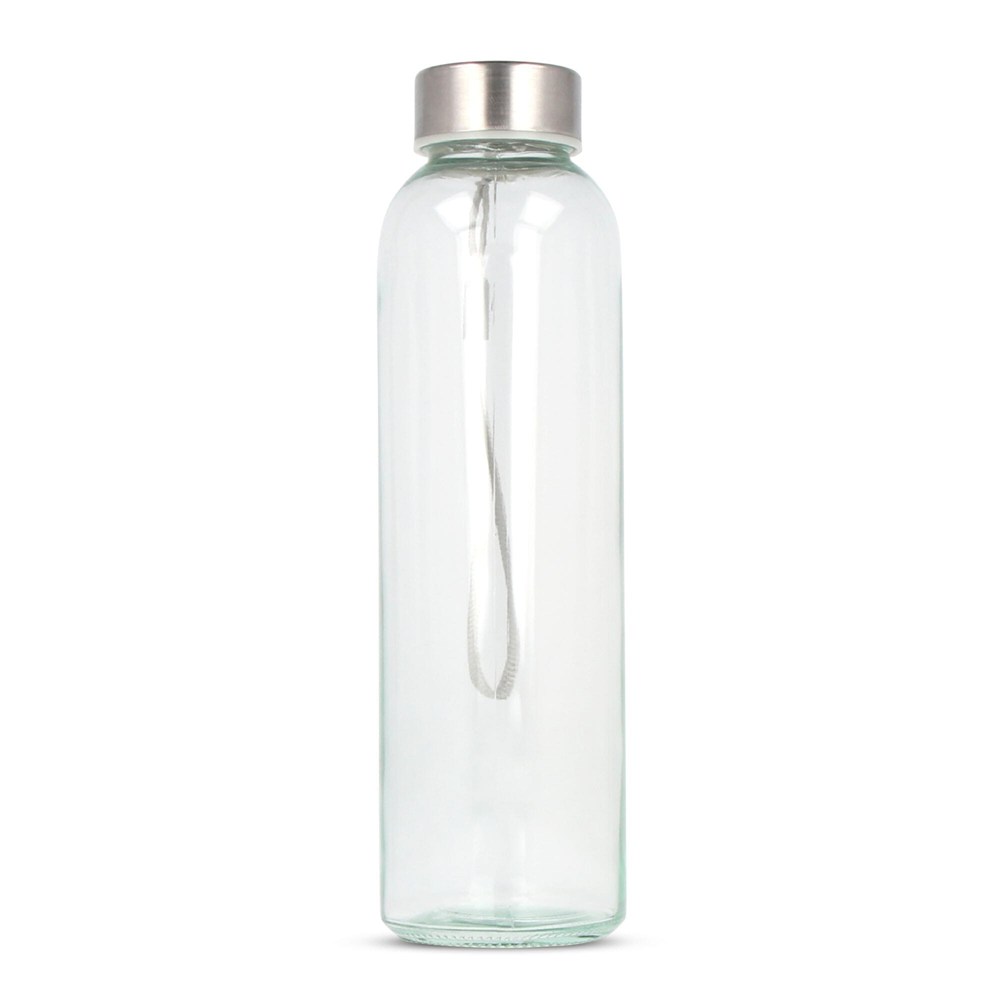 Die Wasserflasche aus Glas hat ein Fassungsvermögen von 500ml. Mit der Trageschlaufe an der Kappe, kann die Flasche bequem mitgenommen werden. Die Flasche ist für kalte, kohlensäurehaltige und stille Getränke geeignet.