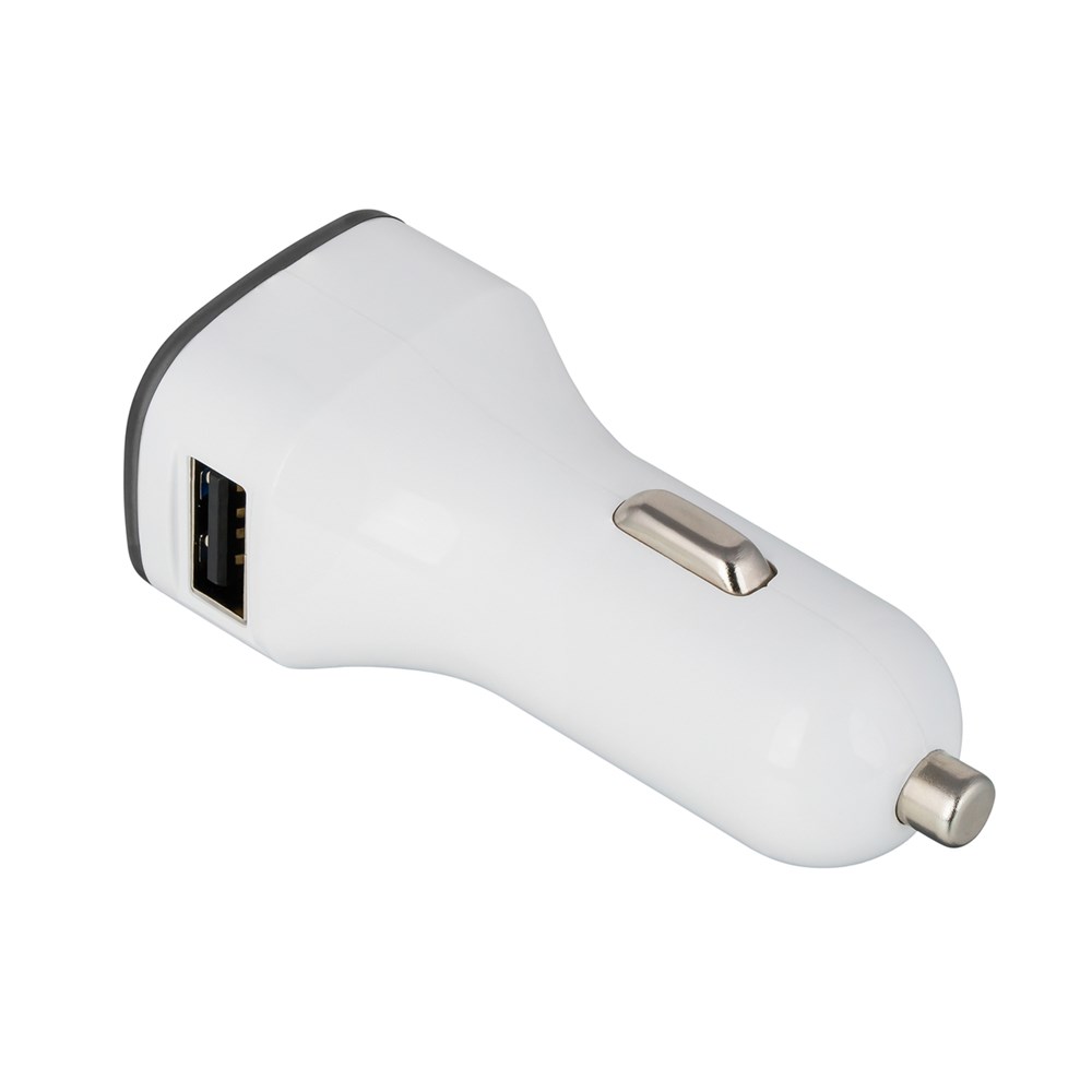 Der intelligente 2-in-1-Autoladeadapter ist für PKW und LKW anwendbar. Mit einer Ausgangsleistung bis zu DC 5V und 3.1A (bei Anschluss auf zwei Geräte verteilt sich die Leistung auf beide). Die intelligente Ladesteuerung weiß genau, wie viel Strom Ihr Gerät zum Laden benötigt. Das integrierte Schutzsystem bewahrt vor Überspannung, Überhitzung und Kurzschluss. Der umlaufende Farbring an der Werbefläche wird per LED hinterleuchtet.