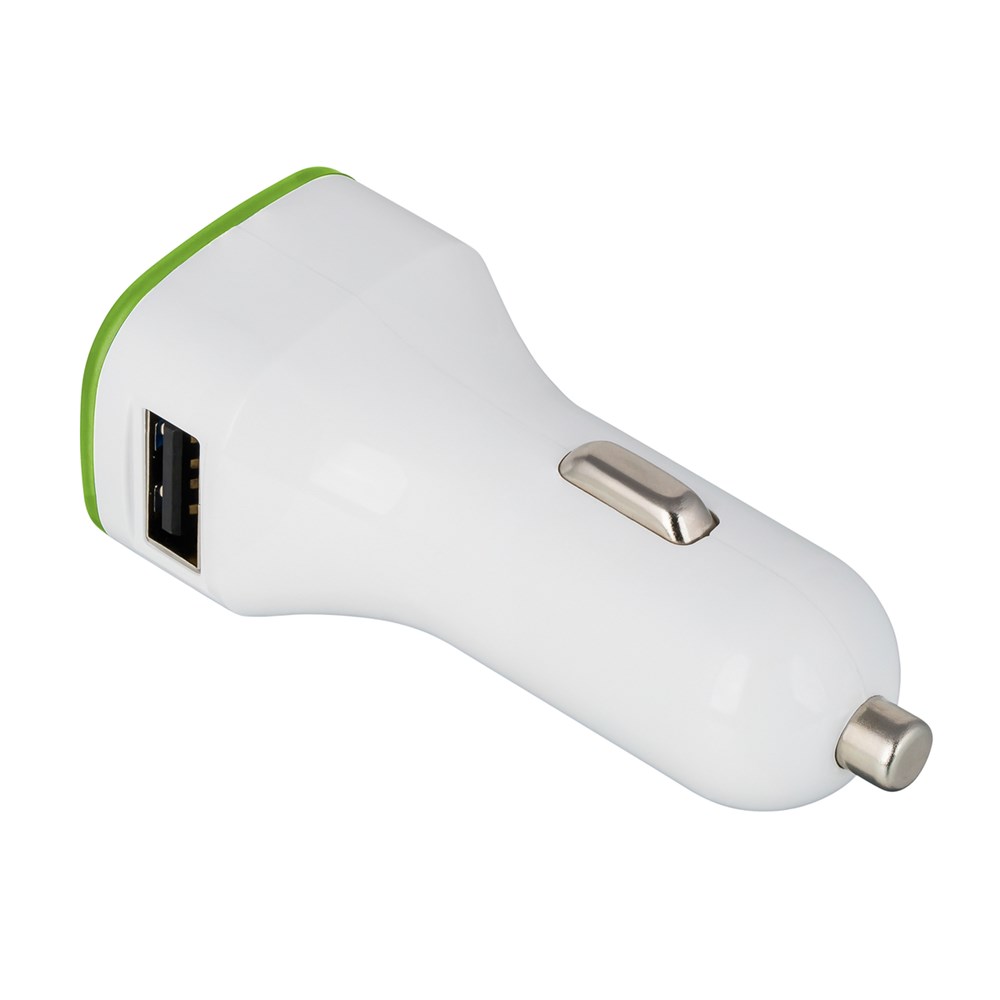 Der intelligente 2-in-1-Autoladeadapter ist für PKW und LKW anwendbar. Mit einer Ausgangsleistung bis zu DC 5V und 3.1A (bei Anschluss auf zwei Geräte verteilt sich die Leistung auf beide). Die intelligente Ladesteuerung weiß genau, wie viel Strom Ihr Gerät zum Laden benötigt. Das integrierte Schutzsystem bewahrt vor Überspannung, Überhitzung und Kurzschluss. Der umlaufende Farbring an der Werbefläche wird per LED hinterleuchtet.