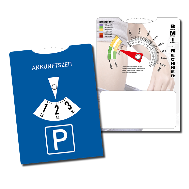 Parkscheibe (AT) mit rückseitigem BMI-Rechner