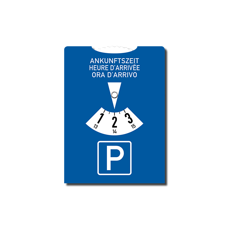Parkscheibe (CH – 3sprachiger Vorderseite) mit Notfallrufnummern