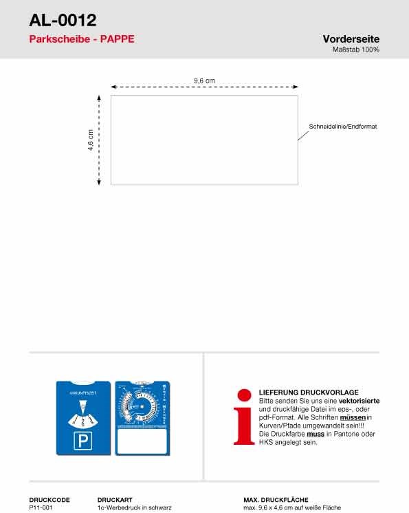 Unsere günstige Parkscheibe Pappe mit Zweitnutzen. Vorderseite in blau, Rückseite mit integriertem Benzinrechner. Die in weiß hervorgehobene Druckfläche ist für Ihre Werbebotschaft (in der Druckfarbe schwarz) vorgesehen. Leicht und schonend für die Umwelt. Entspricht § 42 StVO.