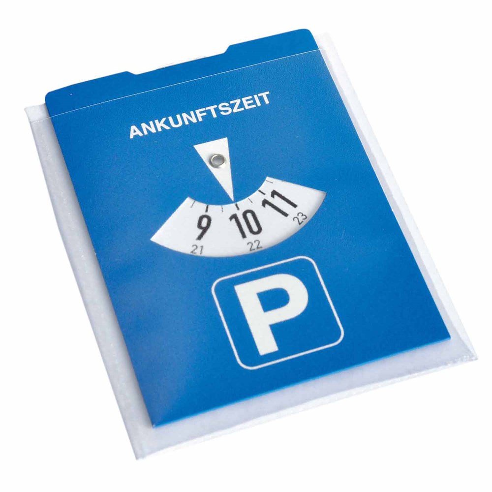 Klarsichthülle, transparent für unsere Papp-Parkscheiben, Öffnung oben, wird lose bei Lieferung beigelegt.