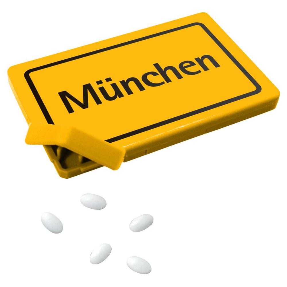 Immer gut welche zu haben. Flachbox mit Bonbonspender. Deutsche Produktion mit Mint Bonbons gefüllt. Ohne Zucker, nachfüllbar. Lieferung ohne Druck.