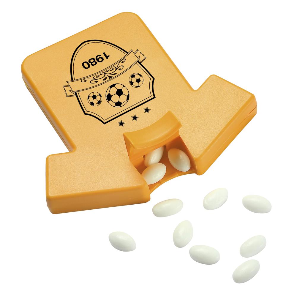 Für Sportfans genau das Richtige. Flachbox mit Bonbonspender. Deutsche Produktion mit Mint Bonbons gefüllt. Ohne Zucker, nachfüllbar. Lieferung ohne Druck.