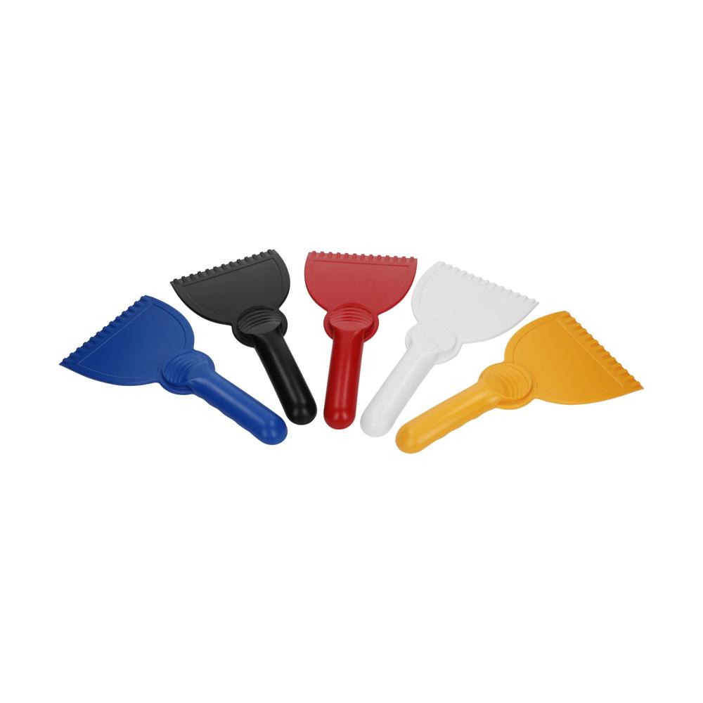 Ergonomisch geformt und stabil. Kunststoffeiskratzer mit glatter Kratzkante, Kratzzacken und handlichem Griff.