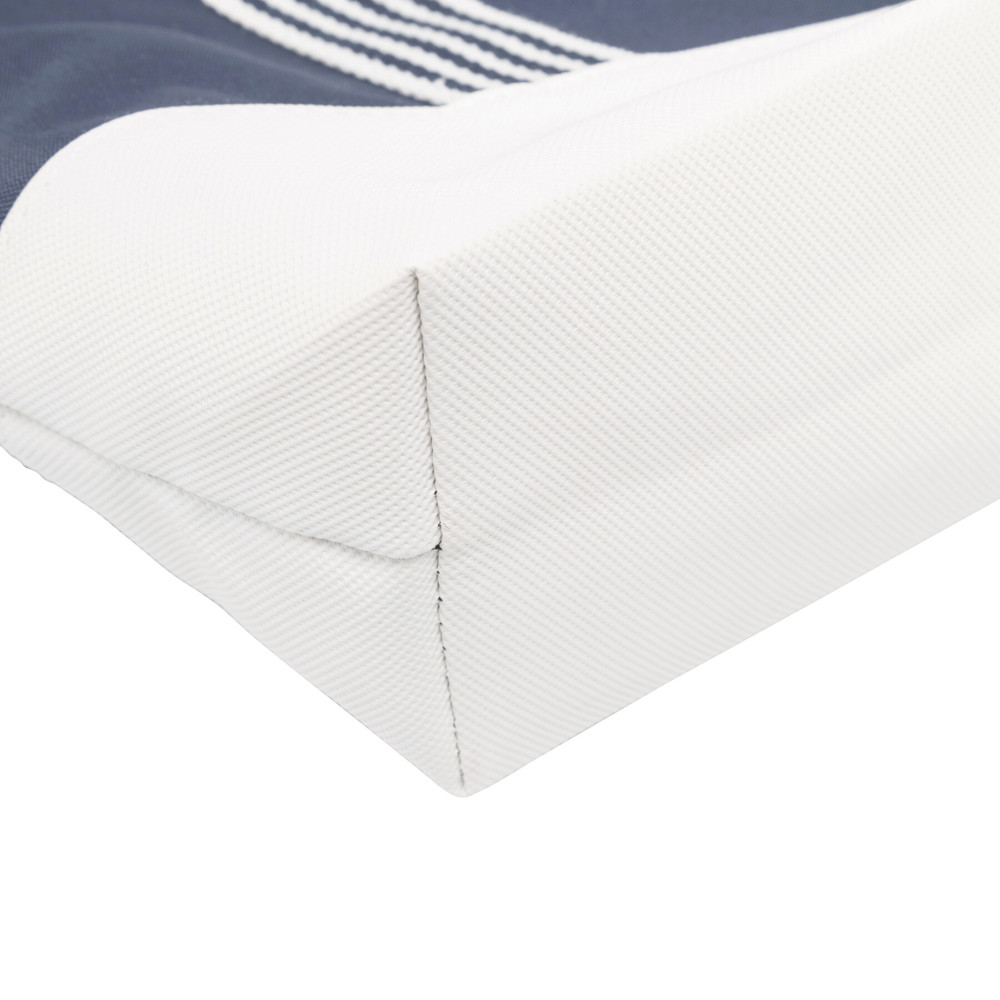 Strandtasche MARLENE: Reißverschluss-Hauptfach, extra Reißverschluss-Tasche innen, Einsteckfach auf der Front, gestreifte Schultergurte mit dekorativer Metallöse, schmutzabweisender Boden