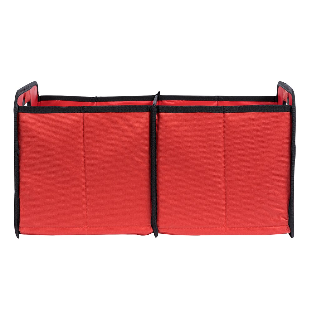 Der zusammenfaltbare Organizer mit integrierten Tragegriffen bietet viel Platz zum Verstauen von Einkäufen, Autozubehör, Büromaterial und vielem mehr. Die Faltbox beinhaltet zwei Fächer mit je einem Netzeinsteckfach und ist durch den verstärkten Einlegeboden äußerst robust und gut geeignet für schweren Inhalt. Maße: 50x32x27 cm