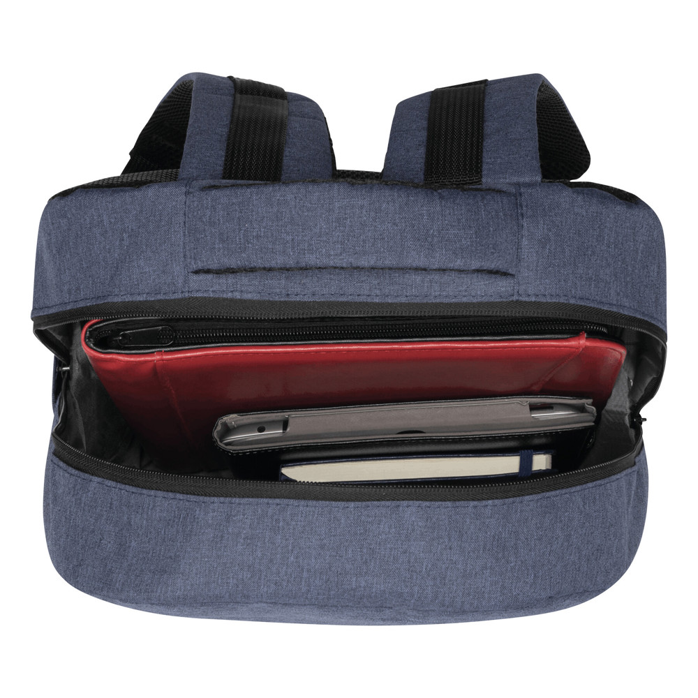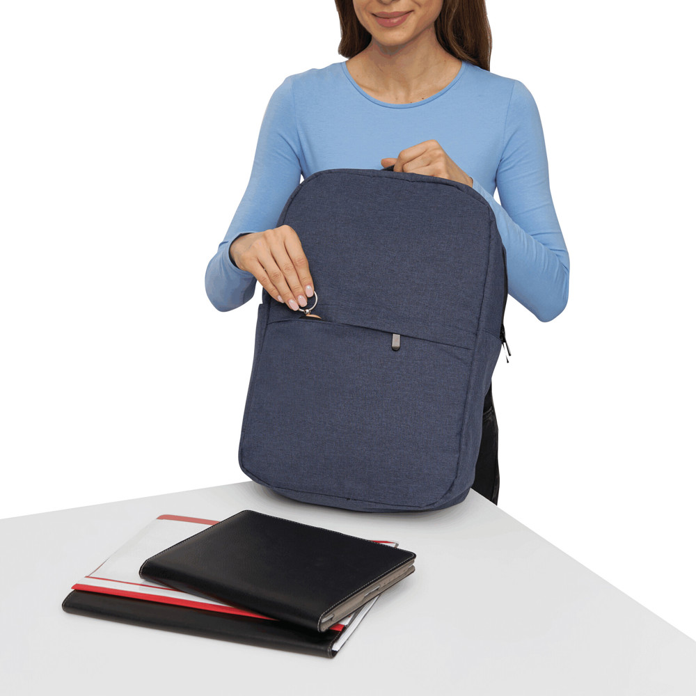 Rucksack PRAGUE: Reißverschluss-Vorfach, Reißverschluss-Hauptfach mit gepolstertem Innenfach für Laptop oder Tablet, Organizer mit 4 Steckfächern, 1 seitliches Einsteckfach, gepolsterter Tragegriff, gepolsterte Schultergurte und Rückenbereich