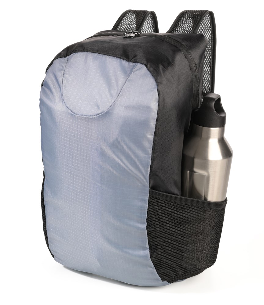 Rucksack faltbar (platzsparend im Innenfach verstaubar), großes Hauptfach mit Reißverschluss, kleines Innenfach mit Klettverschluss, 2 Netztaschen für Flasche und Schirm, längenverstellbare Schultergurte, Kapazität ca. 18 Liter, Tragkraft bis zu 6,5 kg, ultraleicht: Gewicht nur 115g, 100% Polyester, Polyester, grau/schwarz