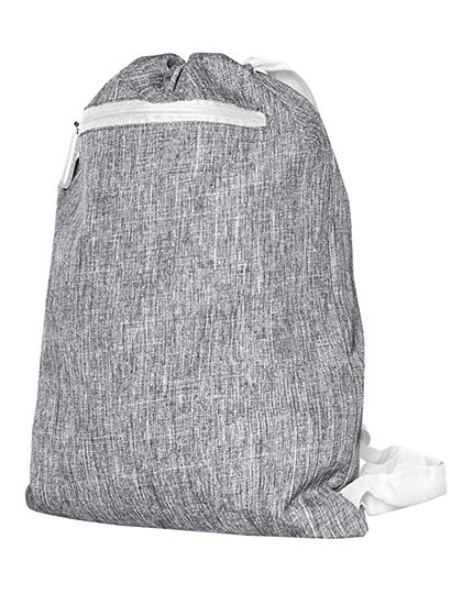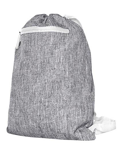 600D Polyester Sportbeutel in Grey Melange | Ein Hauptfach, das durch Zuziehen der seitlichen, farbigen Schulter-Trageriemen verschlossen wird | Ein Reißverschluss-Fach auf der Front | Reißverschluss passend zum farbigen Trageriemen mit farbigem Gummi Zipp-Puller mit „bags2GO“-Prägung | Volumen: ca. 3 Liter | Lieferung ohne Inhalt/Deko