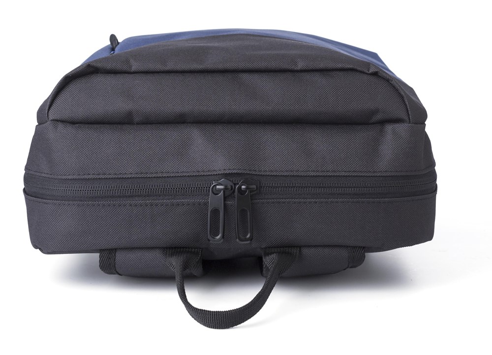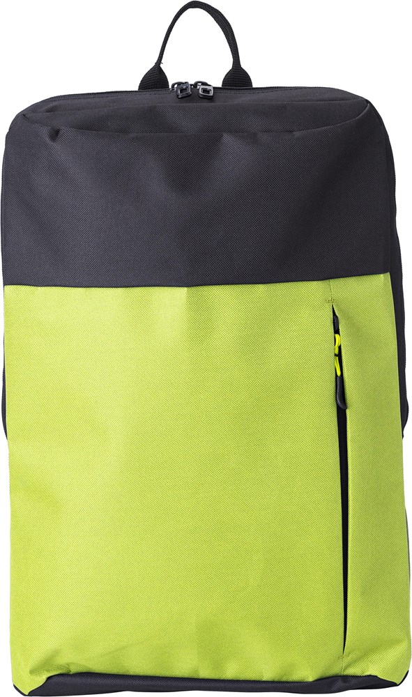 Rucksack aus Polyester (600D) mit Hauptfach und Vordertasche mit Reißverschluss. Die Schultergurte sind gepolstert und verstellbar.