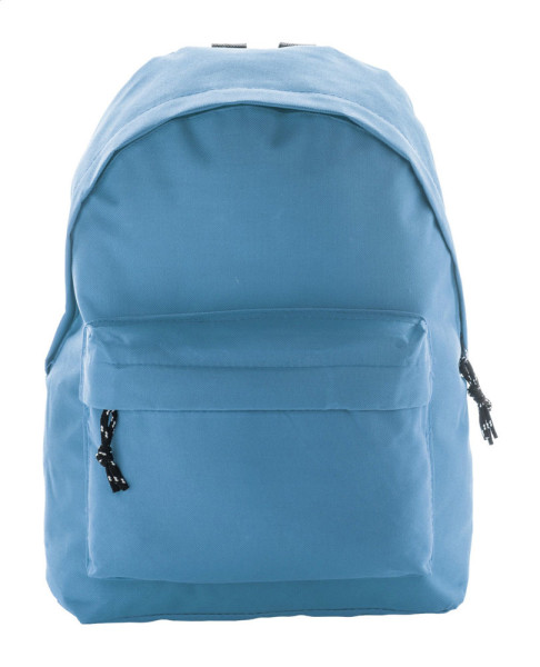 Rucksack mit Reißverschlusstasche, gepolsterter Rückenpartie und gepolsterten Tragegurten. Material: 600D Polyester.