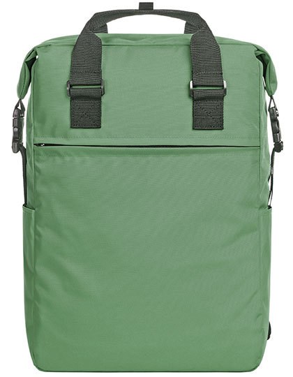 Charmanter rechteckiger Rucksack | rPET-Obermaterial | Geräumiges Hauptfach mit 2-Wege- Reißverschluss | Gepolstertes Notebookfach | Flaches Einsteckfach innen | Seitliche Steckschnallen für komfortables Öffnen | Steckschnallen können als Griff verbunden werden | Große Reißverschluss-Vortasche | Zwei seitliche Einsteckfächer für z.B. Trinkflaschen | Gepolstertes Tragesystem | Handgriffe mit Druckknopfmanschette | Lieferung ohne Inhalt/Deko | Volumen: ca. 16 Liter
