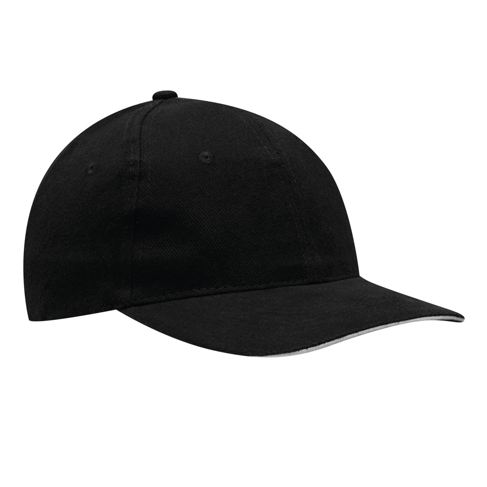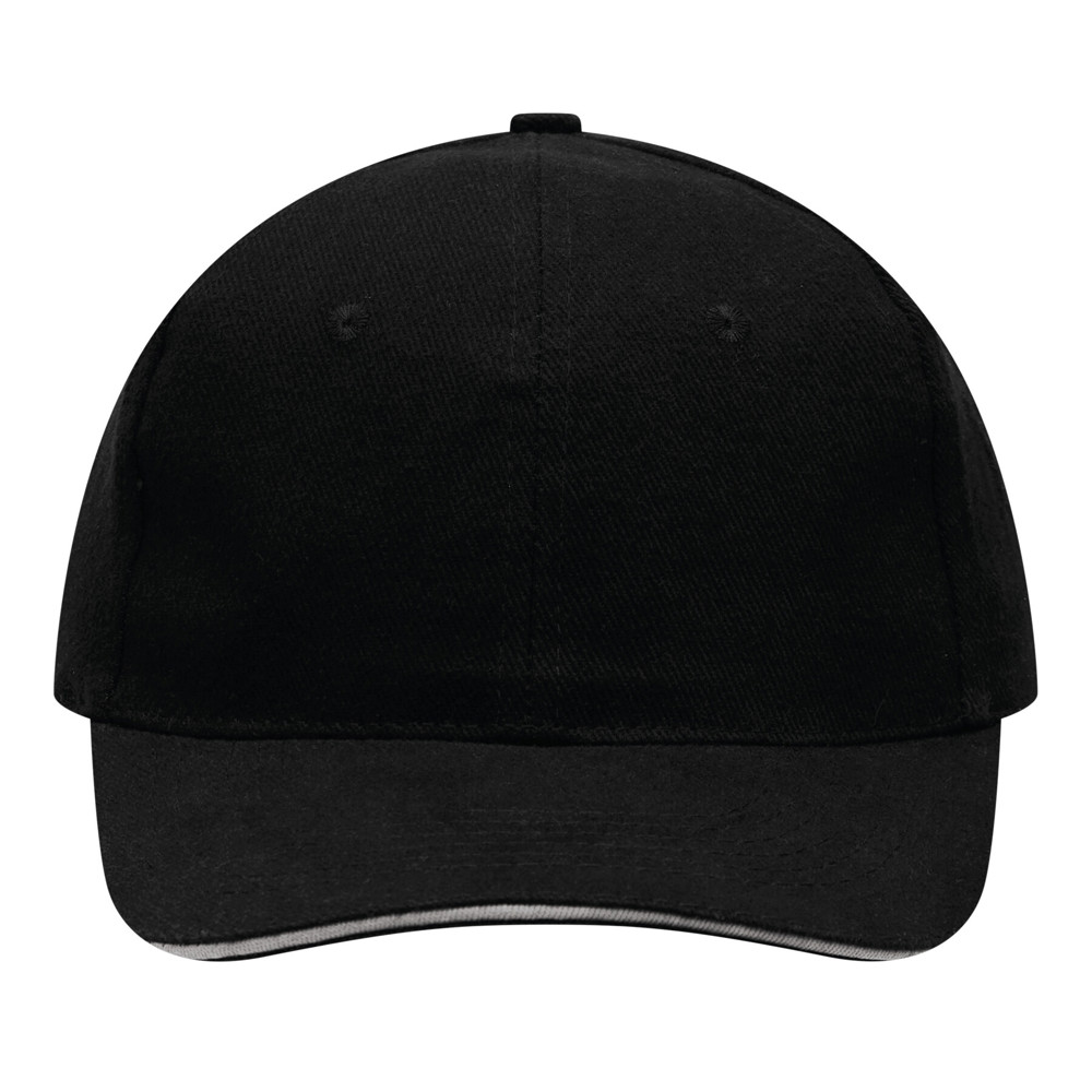 6-Panel-Sandwich-Cap LIBERTY: verstärkte Frontsegmente, 6 gestickte Luftlöcher, Knopf, größenverstellbarer Klettverschluss am Hinterkopf, 100% Baumwolle (heavy-brushed)