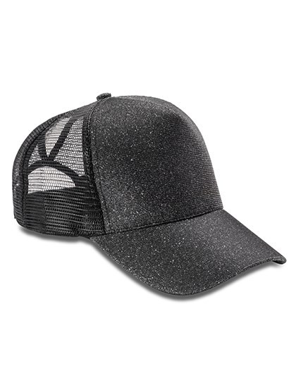5-Panel, vier aus Meshmaterial und eine aus Stoff | Verstärktes Stirnteil | Größeneinstellung durch Klettverschluss | Vorgeformter Stoffschirm | Öffnung für Pferdeschwanz | Abreißetikett