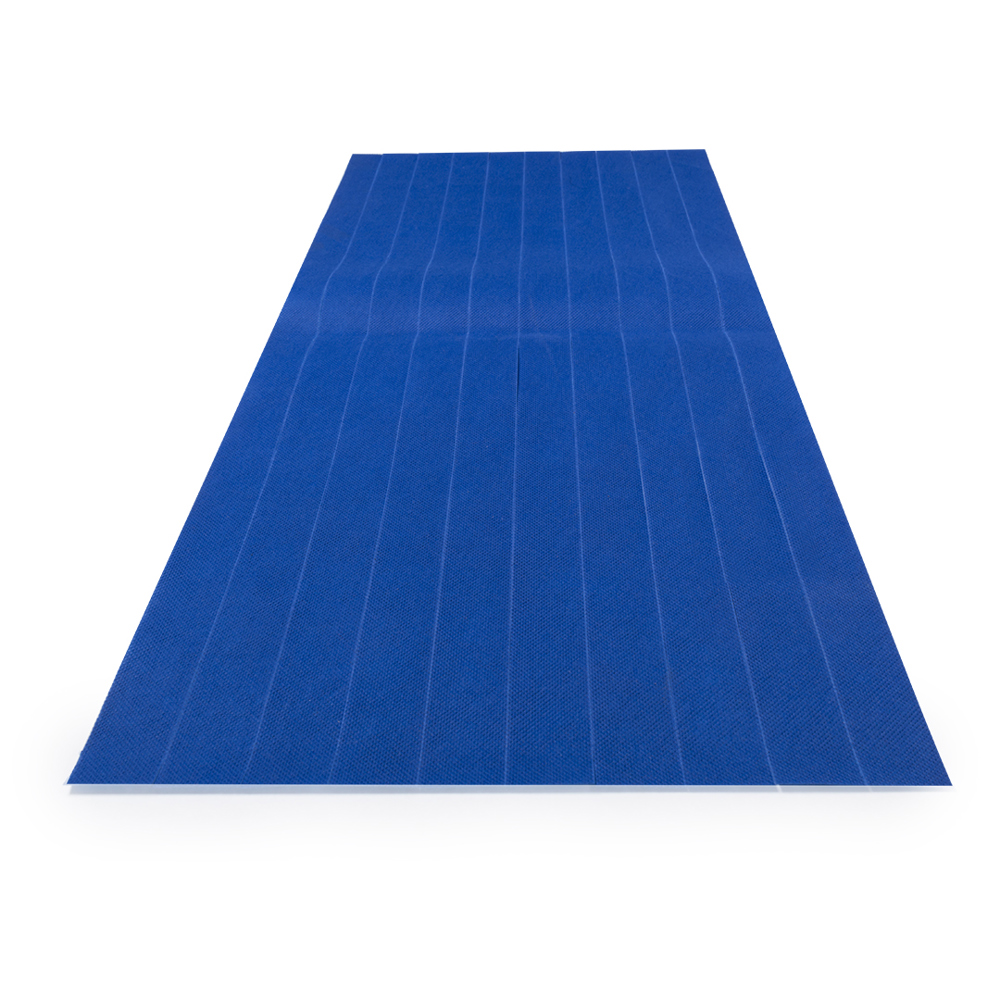 Gestanztes Display mit 10 Non-Woven-Bändern aus Faservlies für Hüte in verschiedenen lebendigen Farben. Präsentiert in ungefaltetem Zustand für einfaches Bedrucken.