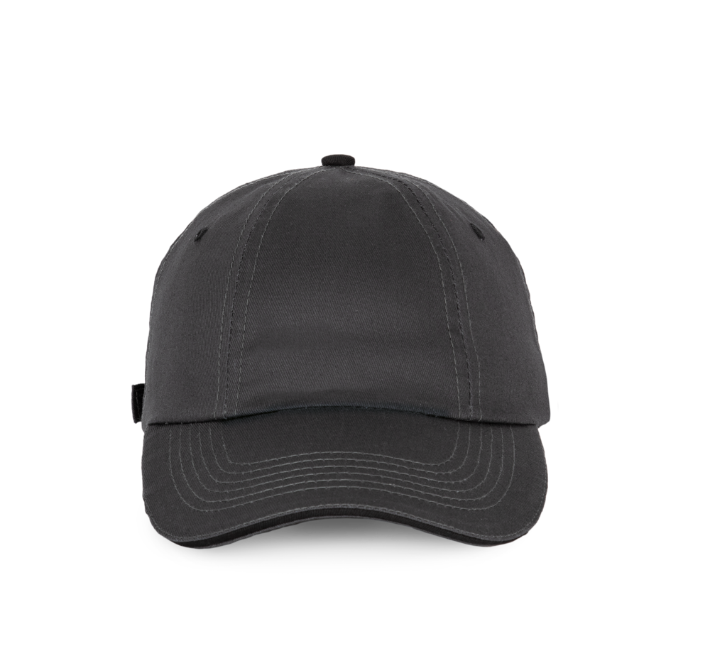 100% gebürstetes Baumwolltwill. Ohne Mittelnaht. Schirm mit Kontrastblende. Klemmverschluss.
