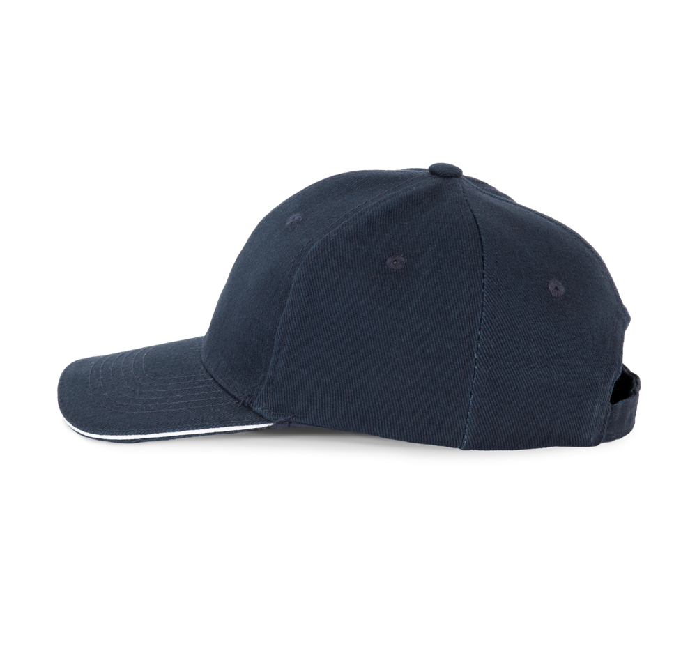 100% grob gebürstetes Baumwolltwill. Schirm vorgeformt mit Kontrastblende. Metallener Klemmverschluss.