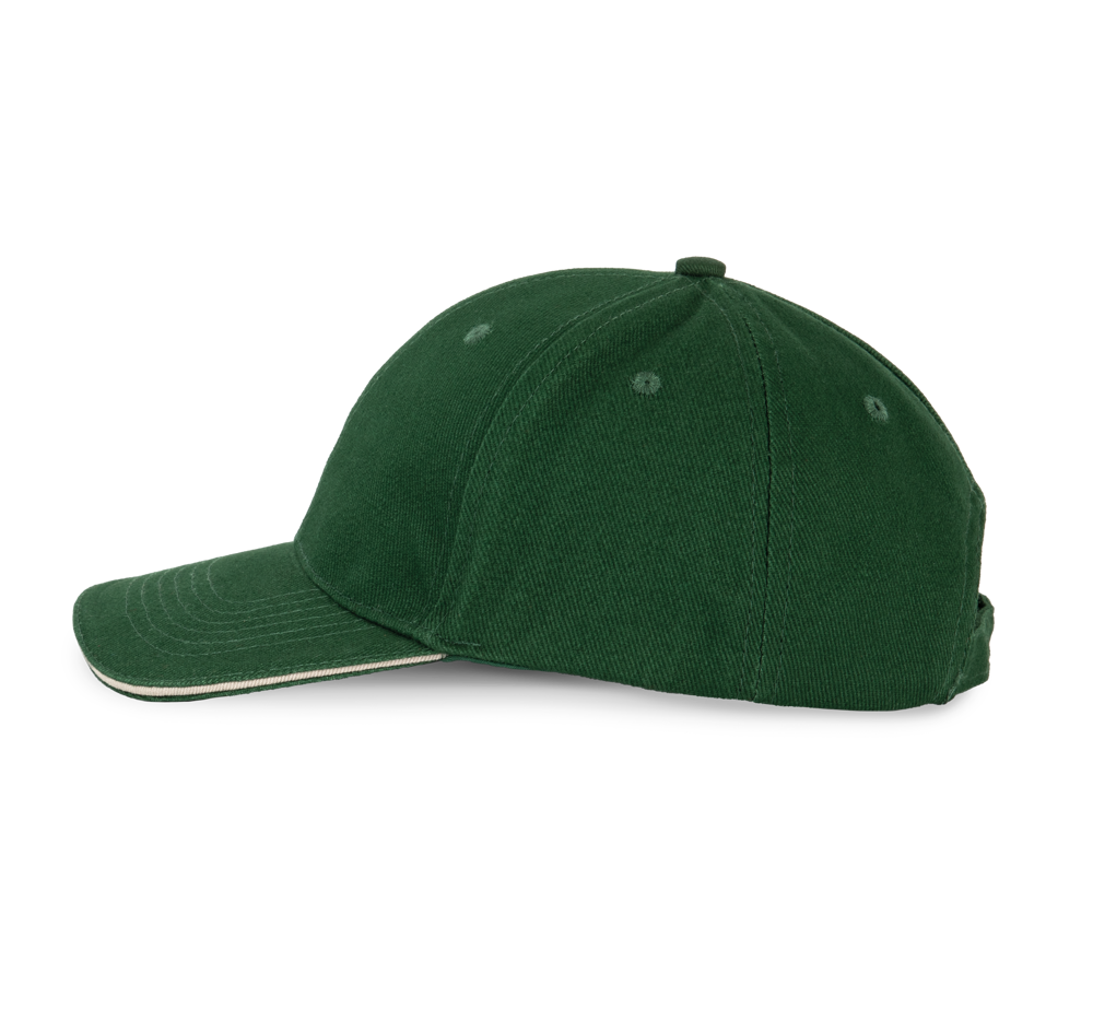 100% grob gebürstetes Baumwolltwill. Schirm vorgeformt mit Kontrastblende. Metallener Klemmverschluss.