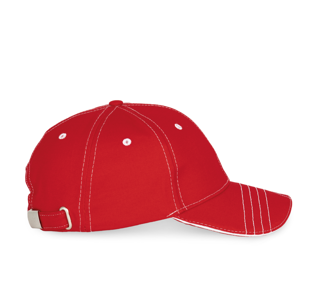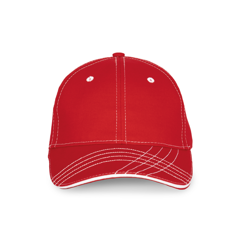 100% gebürsteter Baumwoll-Twill. 6-Panel, laminiert. Ösen und Nähte in Kontrastfarbe. Baumwoll-Schweißband.