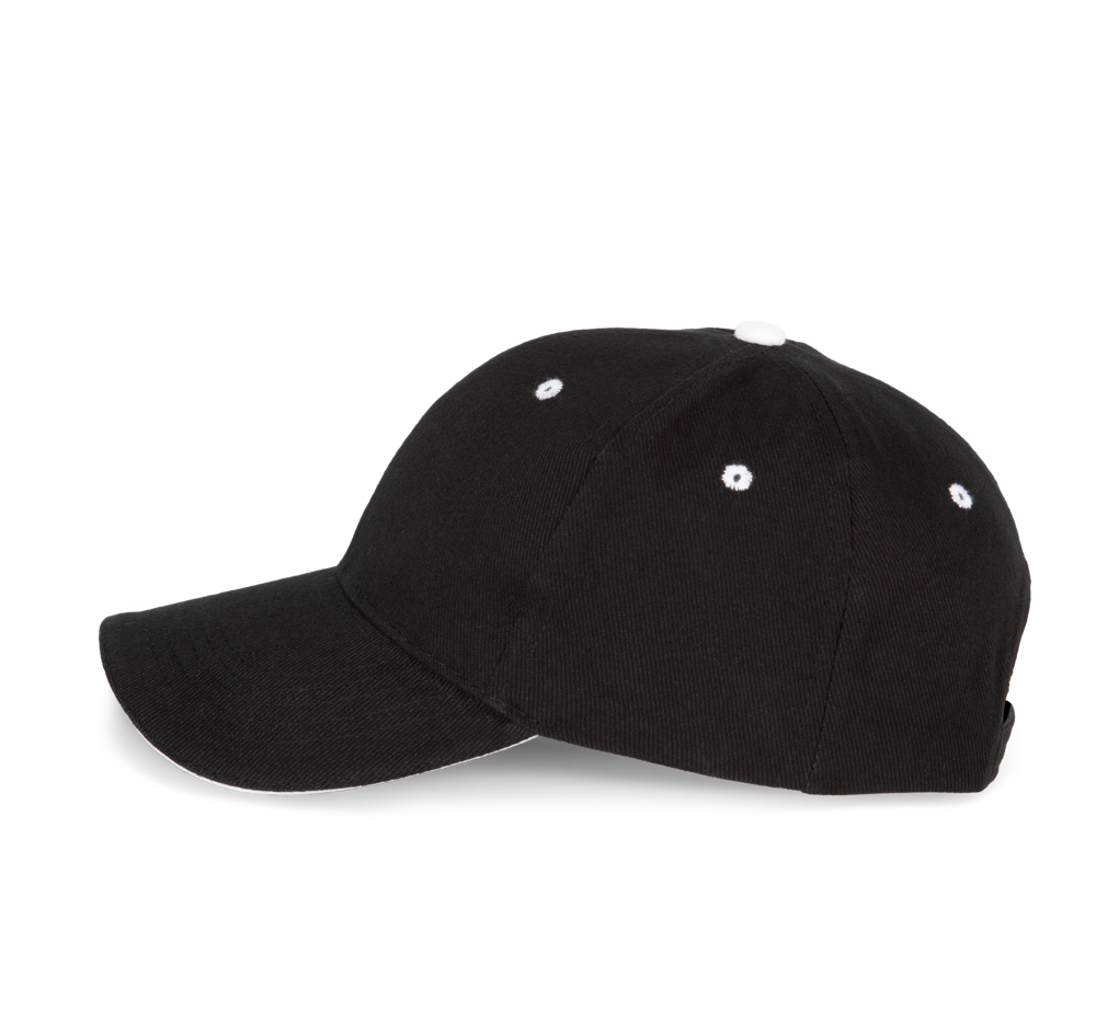100% stark gebürstete Baumwolle. Schirm mit Kontrastblende. Klemmverschluss. * 3 Farben mit zusätzlicher Kontrastfarbe unter dem Schirm.