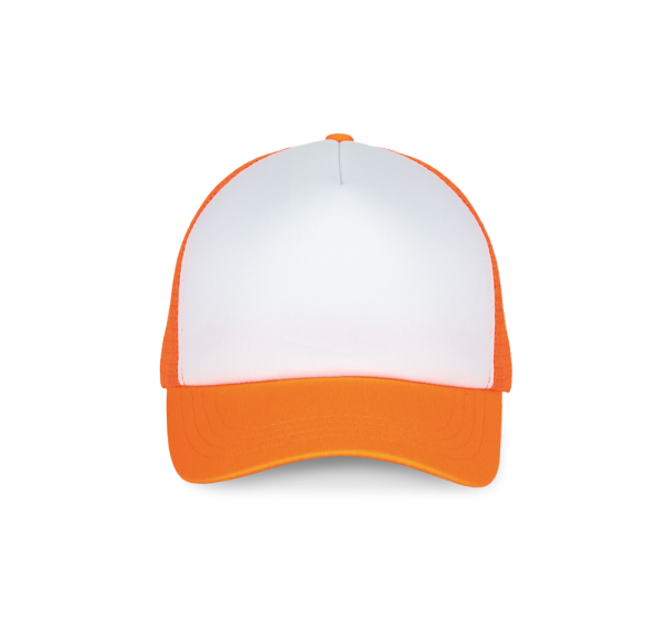 100% Polyester. 5-Panel-Kappe. Mit Schaumstoff-Einsatz zur Personalisierung am Vorderpanel und am Schirm. Größenverstellbar durch Kunststoffschnalle.