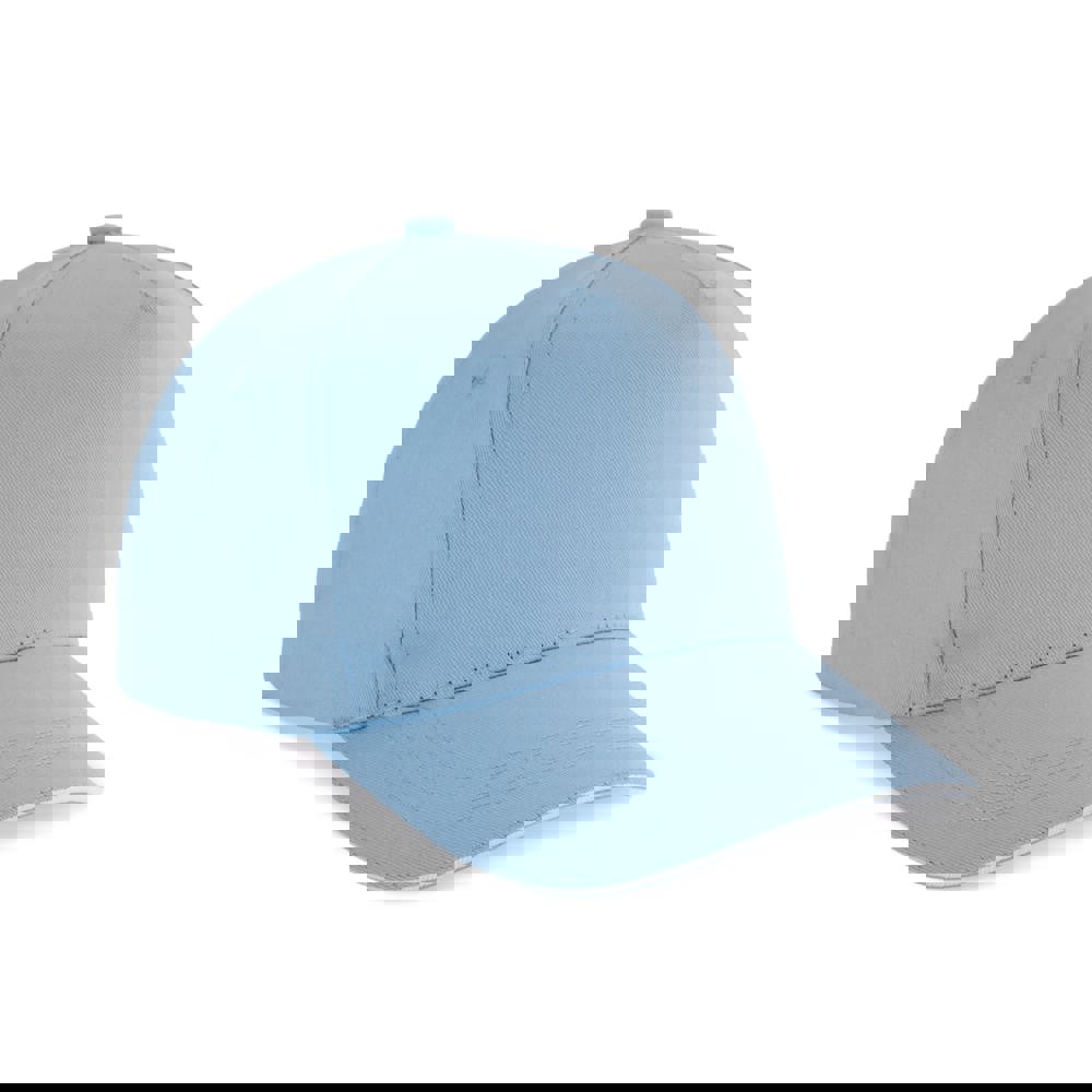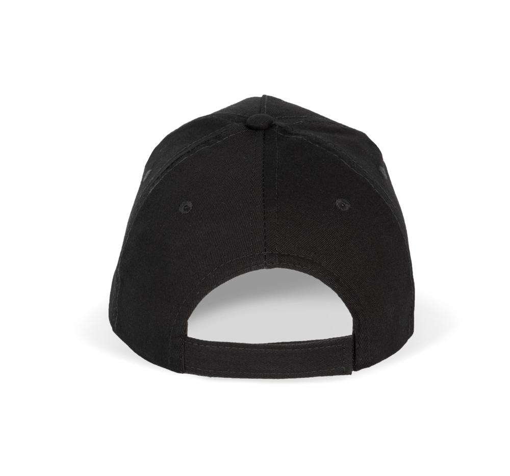 100% Baumwolltwill. 5-Panel-Kappe mit Schweißband aus Baumwolle. Größenverstellbar durch Kunststoffverschluss.