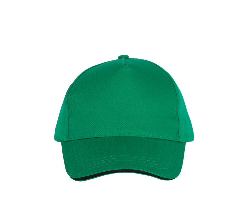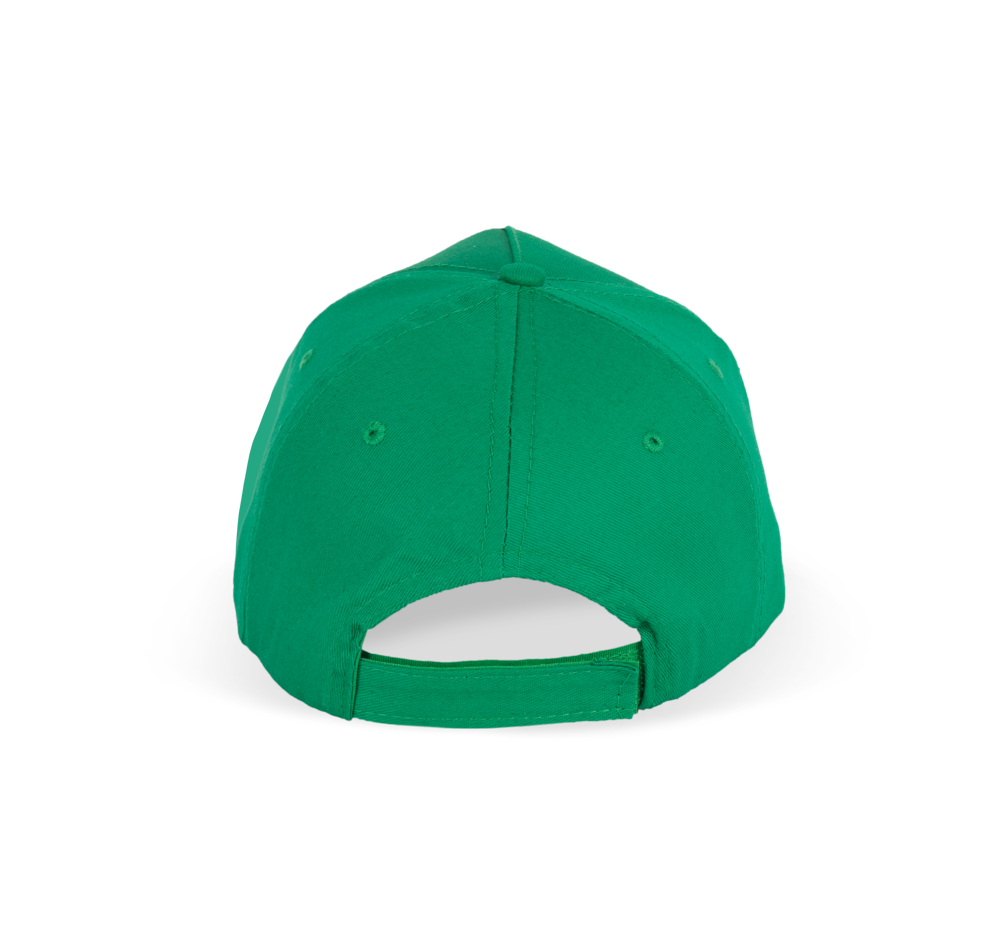 100% Baumwolltwill. 5-Panel-Kappe mit Schweißband aus Baumwolle. Größenverstellbar durch Kunststoffverschluss.