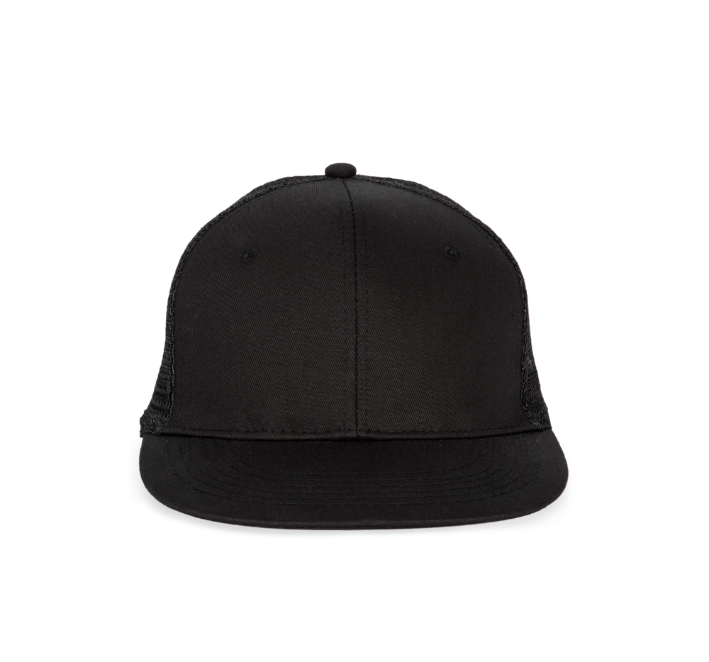 Laminierte Flachschirm-Kappe, 6 Panels aus 100% Baumwolle mit 100% Polyester Mesh. Baumwoll-Schweißband. Größenverstellbar durch Kunststoffschnalle.