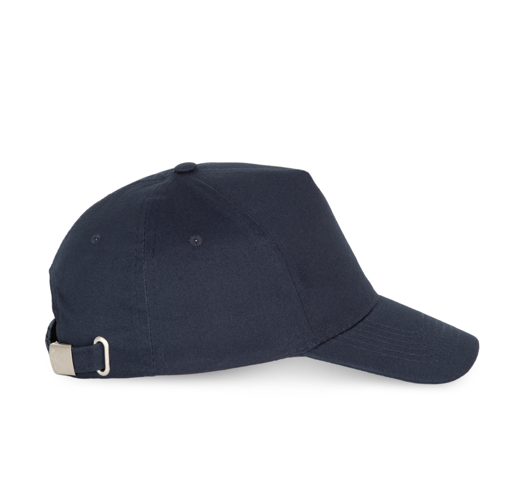 100% gebürstetes Baumwolltwill. Schirm verstärkt und vorgeformt. Verstellbar durch Metallclip hinten.